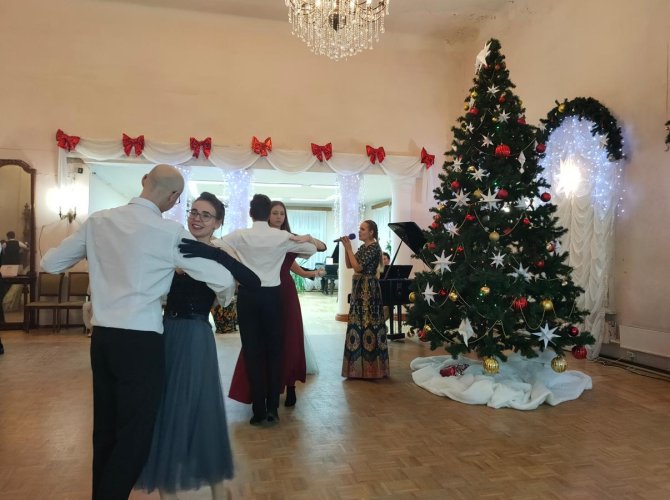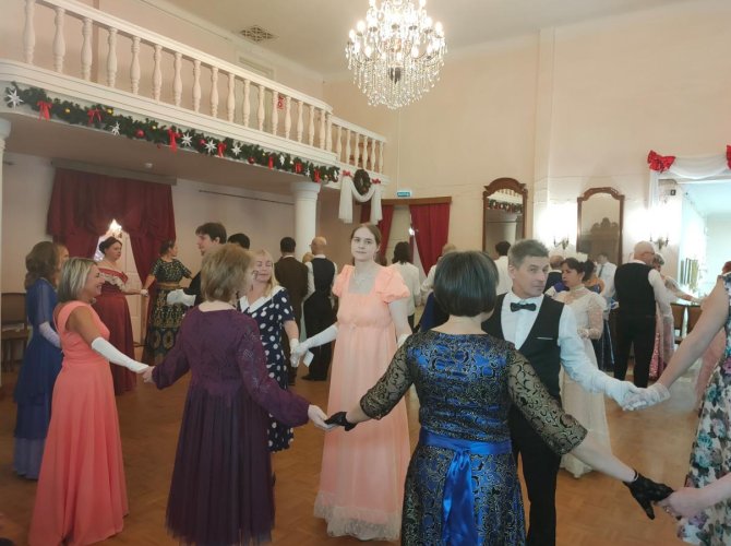 Кроме танцев — польки, контрданса и вальсов — для гостей Дома Коммерческого собрания подготовлена развлекательная программа: настольные игры, мастер-класс по изготовлению новогодней открытки в технике коллаж и в стиле винтаж, а также возможность сделать красивые фотографии в интерьерах старинного дома.