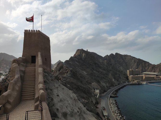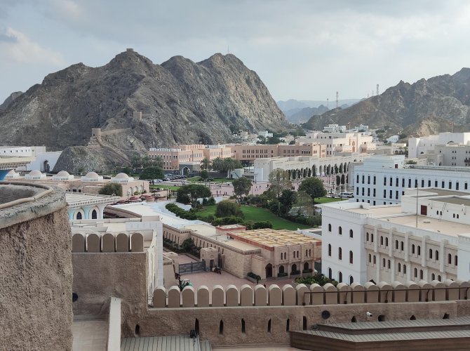 Сперва был Маскат — дивный город, прижатый горами скалами к морю — древние форты, чистота, уют и покой.