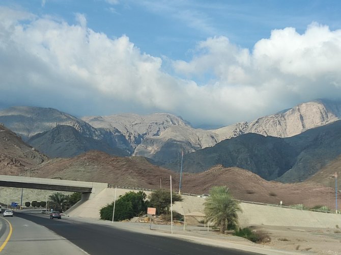 По пути видишь и горы разных цветов — от ярко красного до иссиня-чёрного, и каменистую пустыню и чудные тёмно-зелёные оазисы в долинах Вади. Маленькие городочки — беленькие, чистые с изящными минаретами вдоль дороги словно встроенные в неприступный Ходжар.