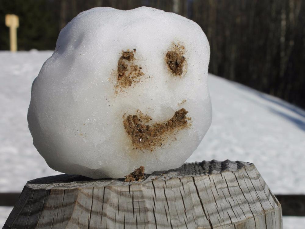 Улыбки из снега установлены практически на каждом углу в музее Малые Корелы.