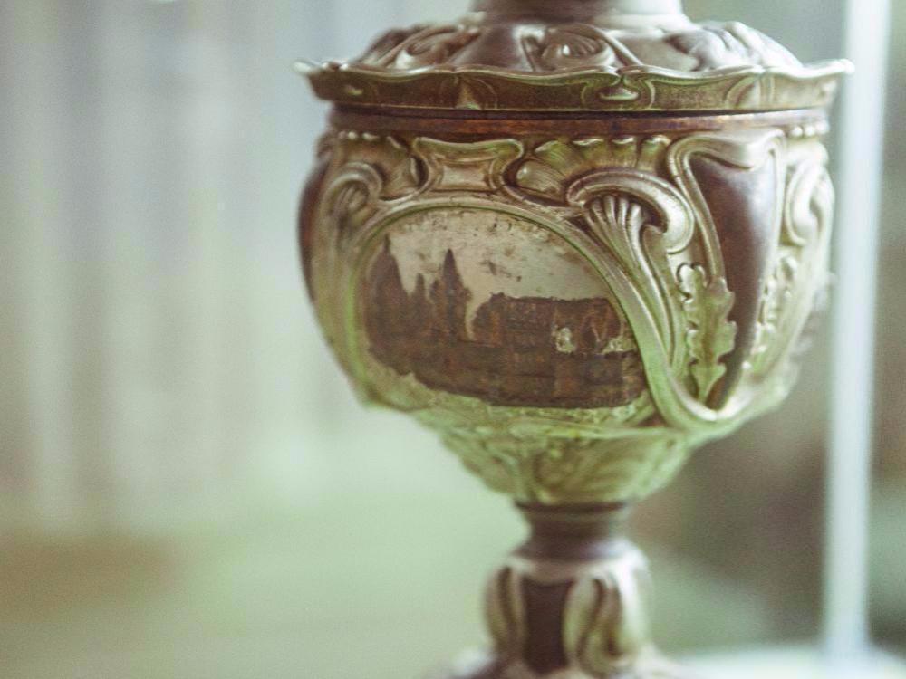 Так, крышка керосиновой лампы «Рыцарский кубок» украшена изображениями рыцарских шлемов с опущенными забралами и пучком перьев на затылке. По борту — изображения собора и двух рыцарских замков, с поясняющими рельефными надписями в нижней части на картушках — это Эрфуртский кафедральный собор Богоматери на Сборной горе, крепость в городе Кобурге и замок в городе Айзенах.