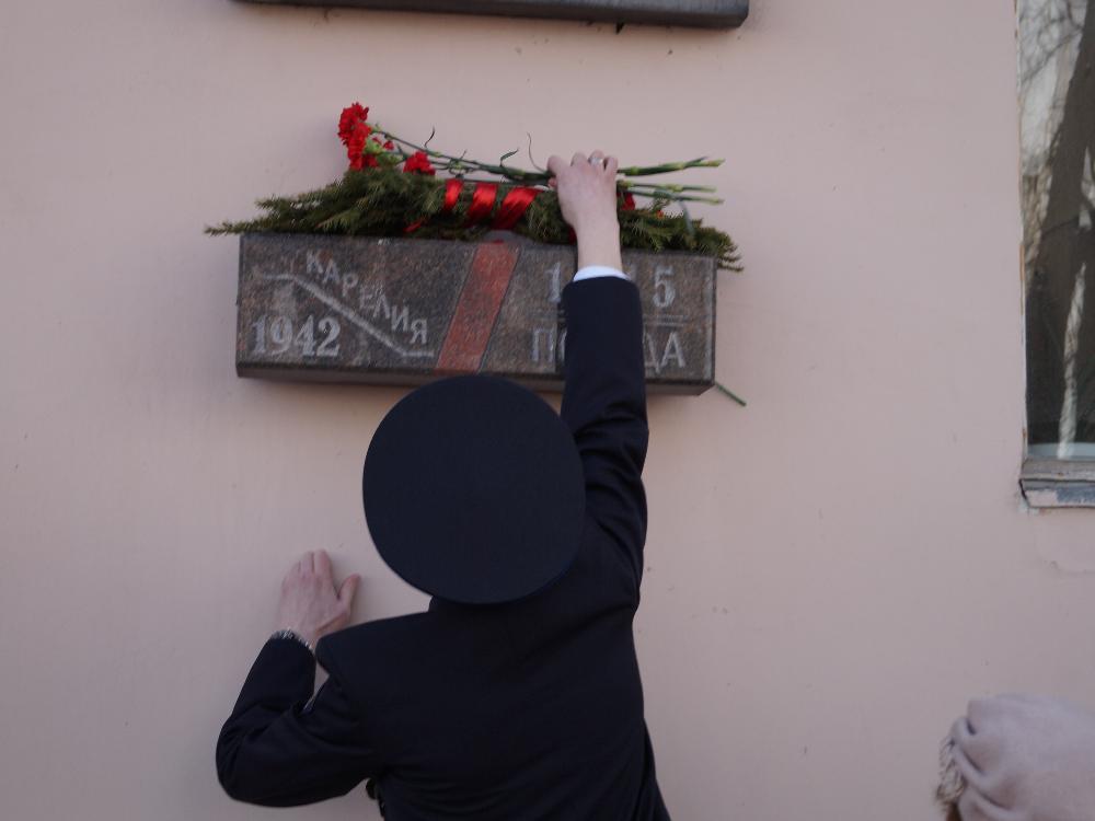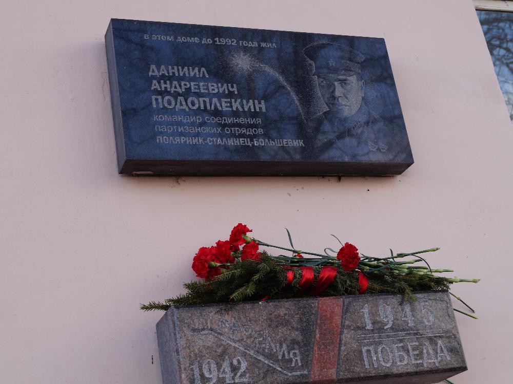Митинг начался с возложения цветов к мемориальной доске, расположенной на доме, где жил командир партизанского отряда «Полярник» Подоплекин Даниил Андреевич (ул. Набережной Двины, д. 96).
