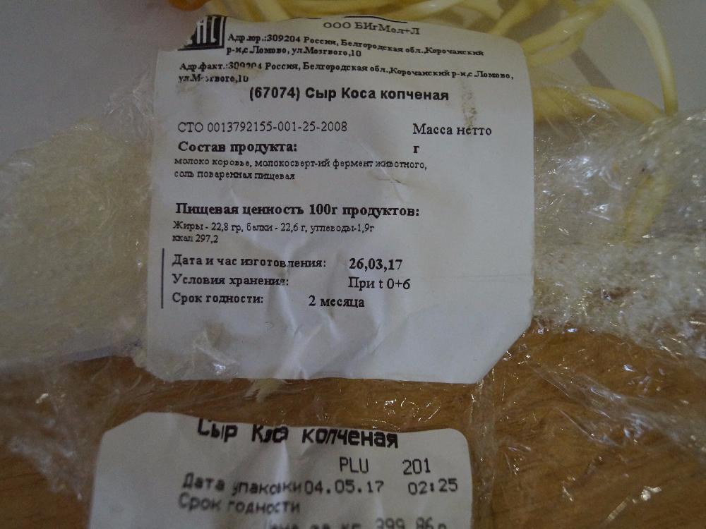 Сегодня корреспондент ИА «Эхо СЕВЕРА», мониторящий качество товаров на прилавках городских магазинов, приобрел в «Петровоском» (что в «Фудзи») сыр косу (в народе более известная, как сыр-косичка).