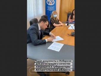 «Подал документы в избирком для регистрации в качестве кандидата в губернаторы Архангельской области», — подписал Александр Цыбульский «сторис» на своей странице в «Инстаграм».