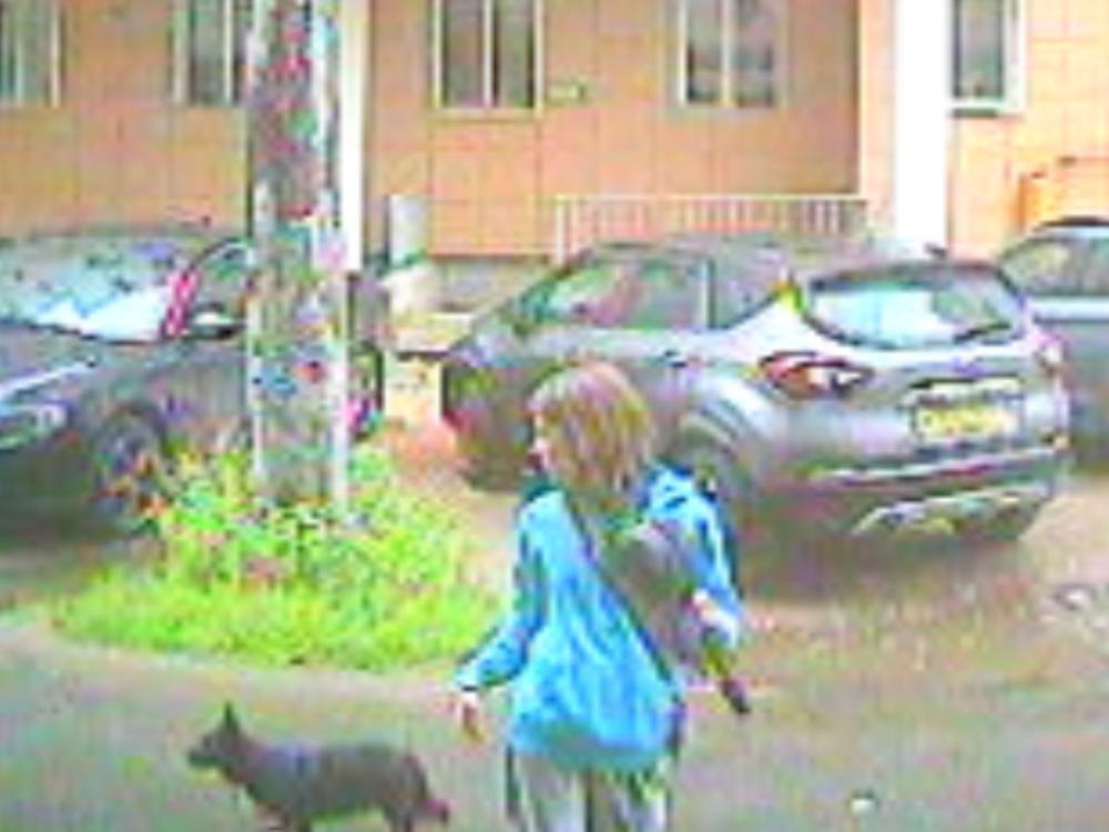 На момент совершения противоправных действий была одета в толстовку с капюшоном голубого цвета, светло-серые спортивные брюки. При себе имела черный зонт. Также с разыскиваемой была небольшая собака черного цвета неизвестной породы.