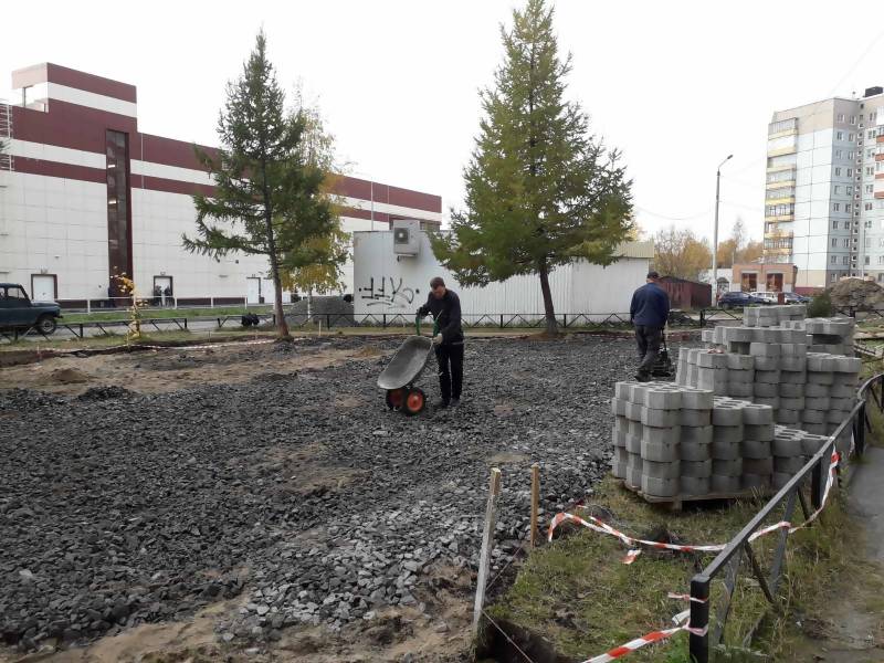 Первый двор, расположенный в районе домов 104, 106 и 108 по улице Воскресенской (Ломоносовский округ), благоустраивается ООО «Хоттабыч». К слову, эта же компания занимается обустройством сквера возле Исакогорского детско-юношеского центра на улице Ленинской, 16 (Цигломенский округ), где на текущий момент работы практически замерли.
