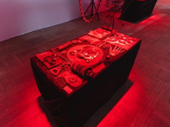 На выставке представлены модульные объекты, созданные в сложной технике плавления стекла и дополненные световыми инсталляциями. У зрителей есть возможность взаимодействовать с ними, используя инструкцию — игру, с помощью которой каждый мог оставить свой неповторимый вклад в развитие современного искусства Севера. Помимо этого, на столах лежали элементы, используемые в процессе создания объектов.