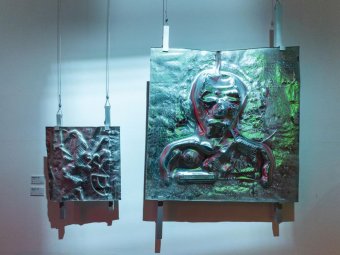 — Мы брали обычное прозрачное стекло толщиной четыре миллиметра, выкладывали на нём какие-то композиции из камня и металла. Использовать что-то другое мы попросту не могли, потому что при температуре 630 градусов всё расплавлялось. Затем мы переносили получившиеся объекты в вакуумную камеру, в которой нет воздуха, и напыляли на них амальгаму — сплав, который используется при производстве зеркал, — сказал Сергей Коста.