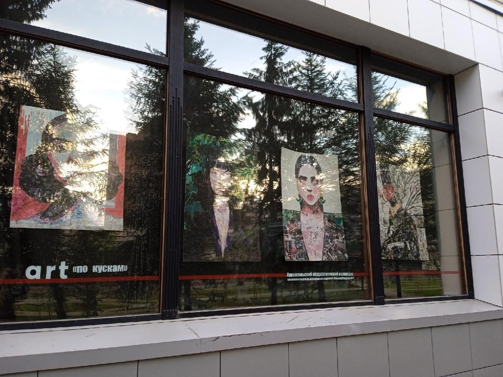 Автор художеств использовал журнальные вырезки студентов педколледжа и расклеил их по огромным ватманам таким образом, чтобы они образовывали женские портреты. Геометрические формы, кусочки этой гомерически смешной мозаики нещадно задевают за живое всех ценителей прекрасного. Мы, к несчастью, в их числе.