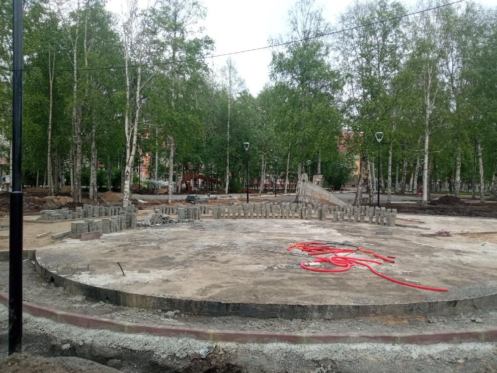 Центр будущей общественной территории — одно сплошное разрытие: горы песка, стройматериалов, неподключённые фонари и куски всевозможных арт-объектов.