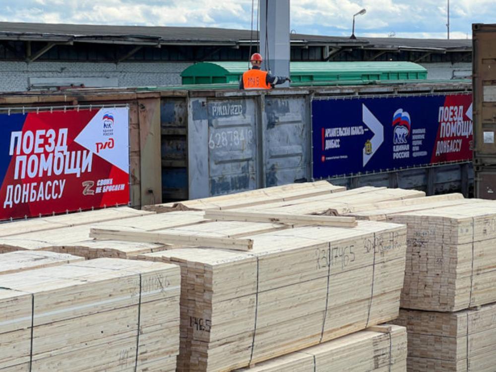 Архангельская область совместными усилиями «Единой России», «Красного Креста», предпринимателей, общественников, неравнодушных жителей Поморья отправила около 170 тонн гуманитарного груза на Донбасс, в который вошли средства первой необходимости, продукты питания, средства гигиены. Региональное отделение «Единой России» организовало отправку более двух тысяч кубометров пиломатериалов северного леса на Донбасс для восстановления инфраструктуры, строительства и ремонта жилья, социальных и других объектов. Это 31 вагон и шесть автомобилей-большегрузов.