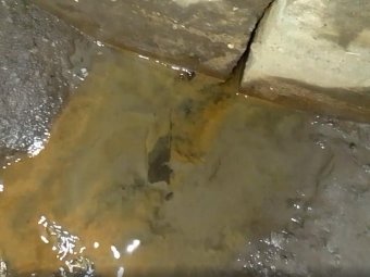 Жильцы дома прислали в редакцию видео, на котором видно, как прорванная труба топит подвал, заливая фундамент плотной струёй холодной воды.
