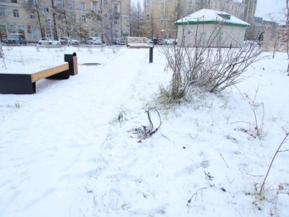 Сообщается, что пропал один из металлических столбиков освещения, а два соседних были расшатаны. Специалисты предполагают, что их тоже хотели похитить. По этой причине нарушилось освещение сектора сквера, который находится вдоль улицы Плюснина.