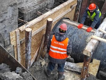 Параллельно идёт работа по обновлению приёмных камер, а именно торкретирование бетоном конструктивных элементов.