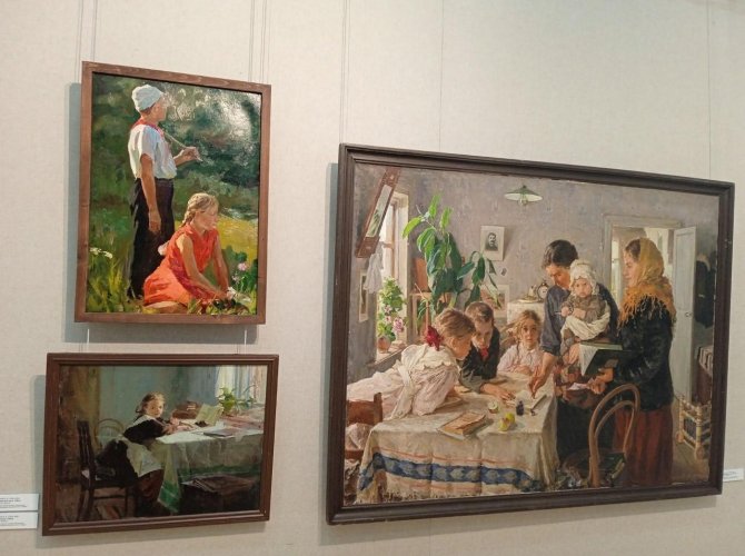В марте в архангельском музее ИЗО открыли выставочный проект, посвящённый теме детства. Некоторые картины находились в фондах местных музеев, а что-то приехало к нам из Ярославля и Вологды. Всего работ на выставке около восьми десятков. Получилось мило.