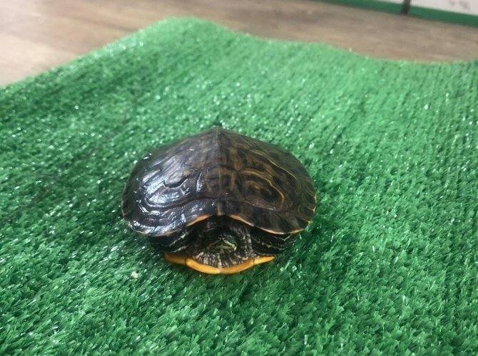 Отметим, что на Севере черепахи не водятся, а значит кто-то купил её в зоомагазине, поиграл, устал и бросил умирать на холодном ветру. Нельзя так делать, стыдно должно быть.