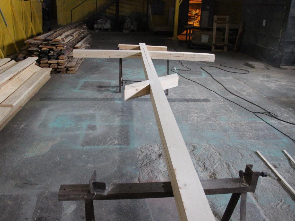 Работы выполняются из давальческого сырья заказчика двумя осуждёнными в деревообрабатывающем цехе Центра трудовой адаптации. В ближайшие дни изготовление креста будет завершено.