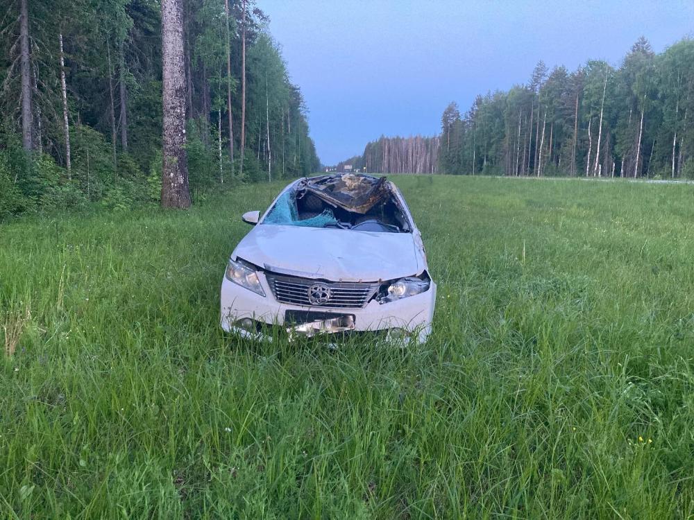 Как сообщает Госавтоинспекция, предварительно установлено, что мужчина 1986 года рождения за рулём «Тойоты» врезался в лося и съехал в кювет.