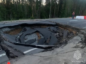По информации пресс-службы губернатора, ночью на участке были организованы работы по устранению провала путем отсыпки участка трассы на месте провала.