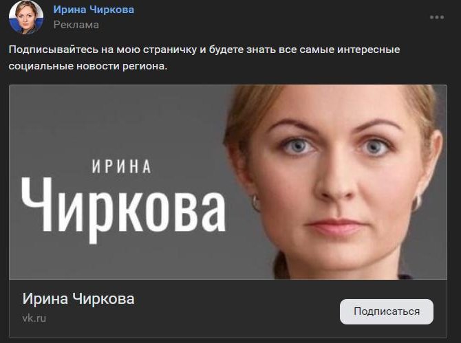Наконец стало известно, за чей счёт ваша лента «ВКонтакте» заполняется рекламным спамом личной страницы Ирины Чирковой. Оплата идёт из кошелька депутата Облсобрания и бизнесмена Олега Черненко.