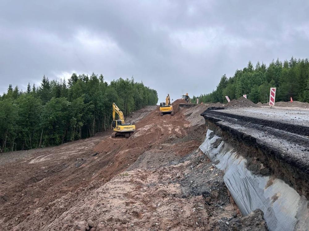— Сейчас уплотняем насыть, поднимаем её, — пояснил Дмитрий Рожин. — Подрядчику поставлена задача организовать проезд к концу недели уже по Онежской дороге, а не по объездному пути. Далее в течение месяца будем мониторить состояние этого участка, затем снова проведём изыскания и только после этого сможем дать подрядчику разрешение на дальнейшее производство работ на этом участке.