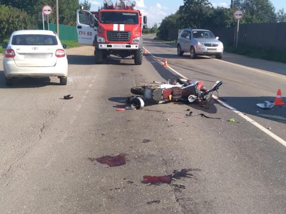 По предварительным данным, водитель 1960 года рождения, управляя автомобилем «Лада», двигаясь в сторону поселка Приводино, при повороте налево не убедился в безопасности маневра и не уступил дорогу мотоциклу «Хонда». Транспортные средства столкнулись.