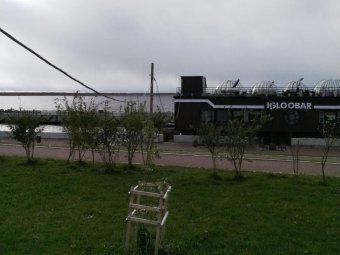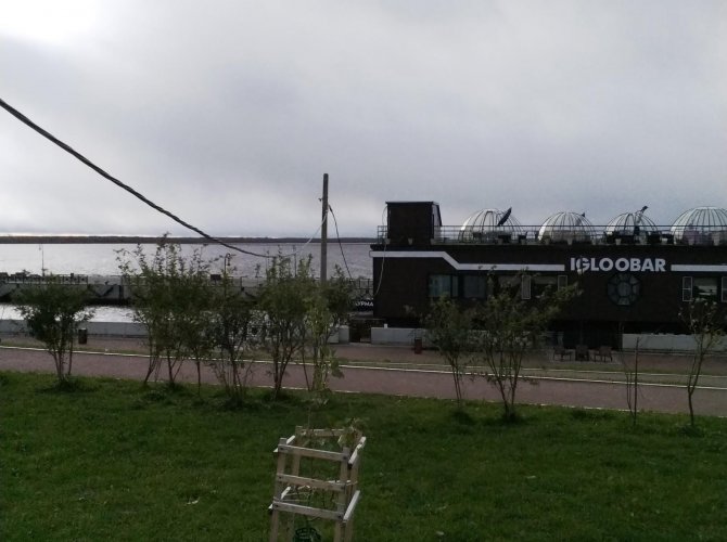 Провода, которые идут к скандально известному бару на дебаркадере «Igloobar», повисли до уровня плеч. В темноте их совершенно не видно.