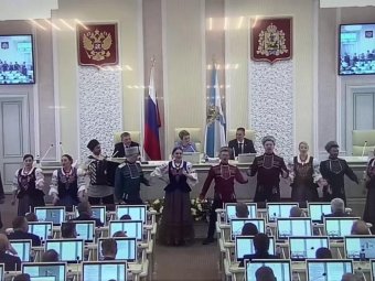 Спикер АОСД Екатерина Прокопьева торжественно представила ансамбль, а парламентарии встретили творческий коллектив бурными овациями. Казаки исполнили зажигательный танец, и заседание продолжилось.