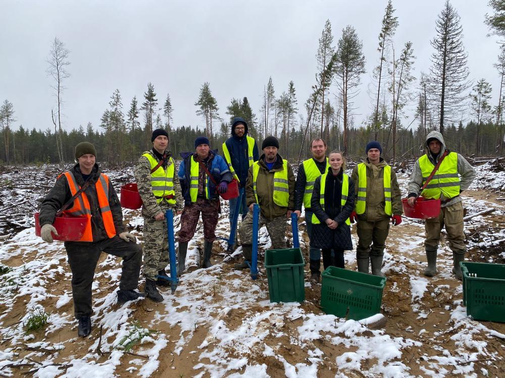 До конца октября в рамках акции Устьянский леспромхоз дополнительно высадит 34 тысячи сеянцев ели и сосны на территории площадью в 16 гектаров.