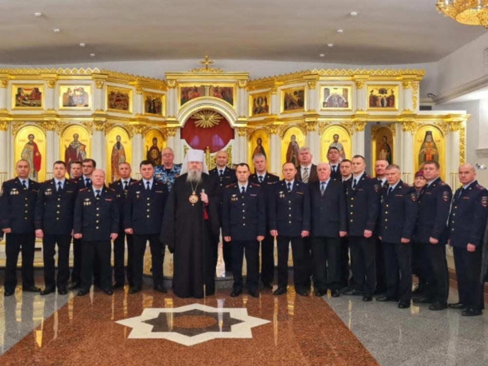 По сообщению пресс-службы епархии, по окончании Литургии архипастырь совершил заупокойную литию в память о сотрудниках органов внутренних дел, погибших при исполнении служебного долга.