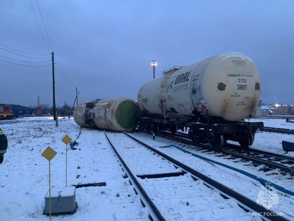 Сегодня утром от диспетчера ж/д станции в Сольвычегодске поступила информация о сходе с путей железнодорожной цистерны с дизельным топливом. Цистерна опрокинулась на бок.