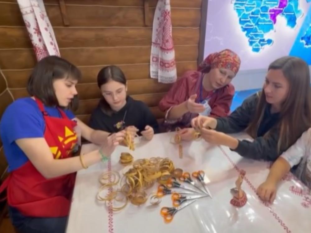 Коношанки также организовали для москвичей и гостей столицы практические занятия по изготовлению витого шнура.
