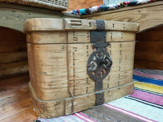 — На рубеже XIX–XX веков ни один интерьер не обходился без сундуков. В них хранили документы, книги, приданое, различную утварь, — отметила заведующая научно-экспозиционным отделом музея-заповедника «Малые Корелы» Светлана Никитинская. — В бедных семьях использовали сундуки простейшего вида, похожие на ящики. Зажиточными хозяевами для хранения праздничной одежды, дорогих тканей и других ценных для семьи вещей приобретались сундуки, нарядно украшенные росписью и окованные жестью. Сундуки всегда были покупными, так как их изготовление требовало совмещения специальностей плотника и слесаря, а порой и живописца.