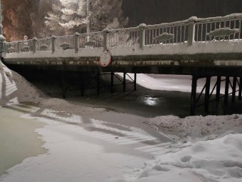 Заливать водой пространство под мостом стало примерно с 10 декабря. Ниже — снимок, сделанный 11 декабря.
