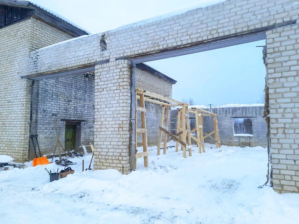 Для стоянки и ремонта дорожных машин в населённом пункте капитально ремонтируется здание площадью порядка 300 квадратных метров.