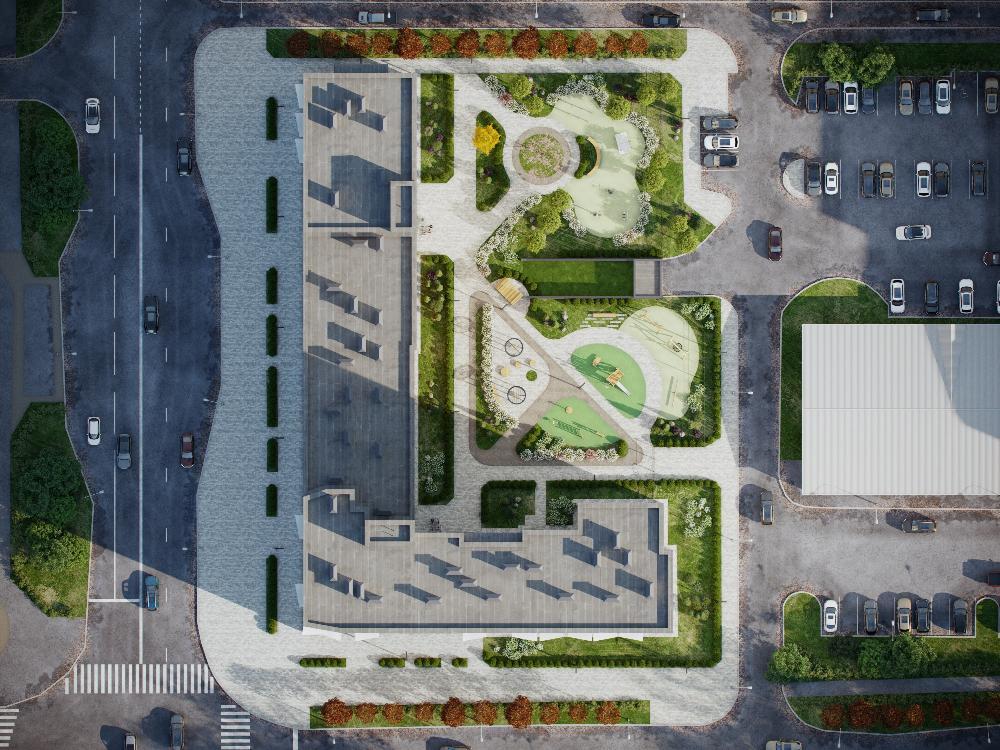 Более 55% территории участка отводится под комплексное благоустройство. Будет создан закрытый двор с детской, спортивной площадками, зонами отдыха, озеленение. Для маленьких жильцов на первом этаже располагается детский клуб «Аквилон KIDS», который передается в собственность жильцов. Предусмотрен подземный паркинг с доступом на лифте и парковочные места на открытой автостоянке.