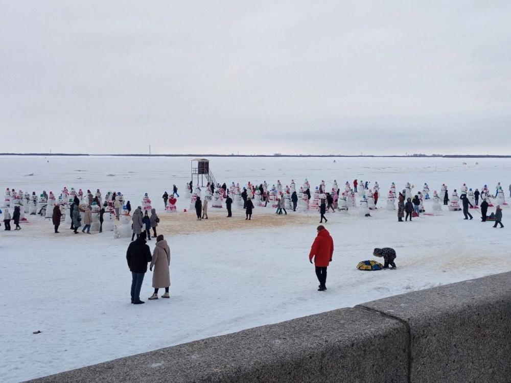 В акции приняли участие студенты 35 регионов нашей необъятной Родины, архангельские школьники, воспитатели детских садов и многодетные семьи. В общей сложности на пляже было слеплено 84 снеговика. Мероприятие посетил и глава Архангельска Дмитрий Морев.