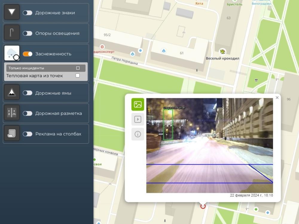 На нескольких автобусах установлены видеокамеры, фиксирующие состояние дороги перед транспортным средством. Данные видеопотока анализирует искусственный интеллект и выявляет несоответствия установленным критериям.