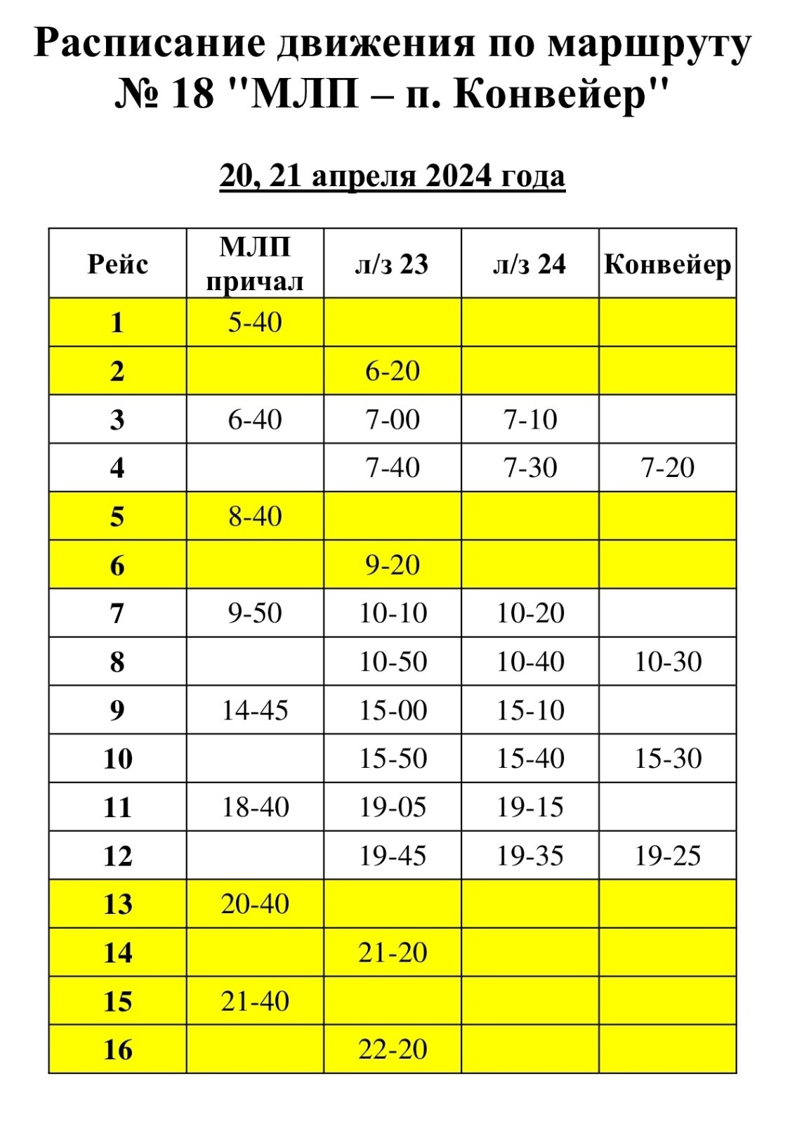 График движения автобуса на предстоящие выходные предоставлен на фото. Желтым цветом выделены дополнительные рейсы.