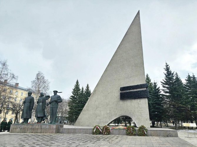 — Остроконечная стрела высотой 19 метров олицетворяет склоненное знамя. Рядом в почетном карауле стоят фигуры защитников Родины — моряка, женщины-воина и солдата. В арке и сегодня горит Вечный огонь — в память о героях Великой Отечественной войны. Мы помним, мы гордимся! — подчеркнул глава Архангельска Дмитрий Морев.