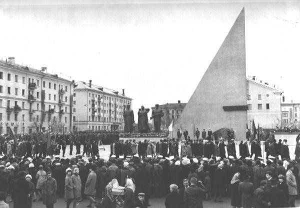 История монумента началась в далеком 1965 году, когда состоялась закладка памятника. Замысел монумента принадлежит архангельскому архитектору Вадиму Кибиреву. Вместе с ним над памятником работали два скульптора — Валентин Михалёв и Юрий Чернов. Торжественное открытие состоялось 55 лет назад — 9 мая 1969 года.