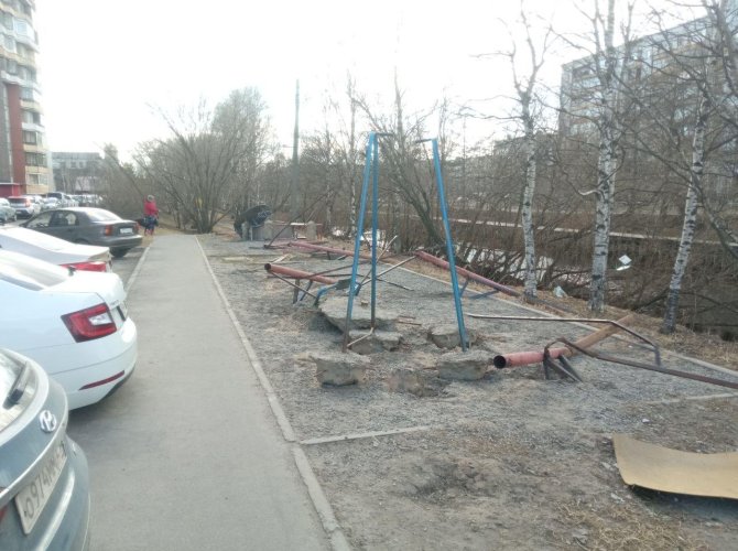 Еще зачем-то раскурочили детскую площадку, хотя основные работы идут метрах в 50 от нее.