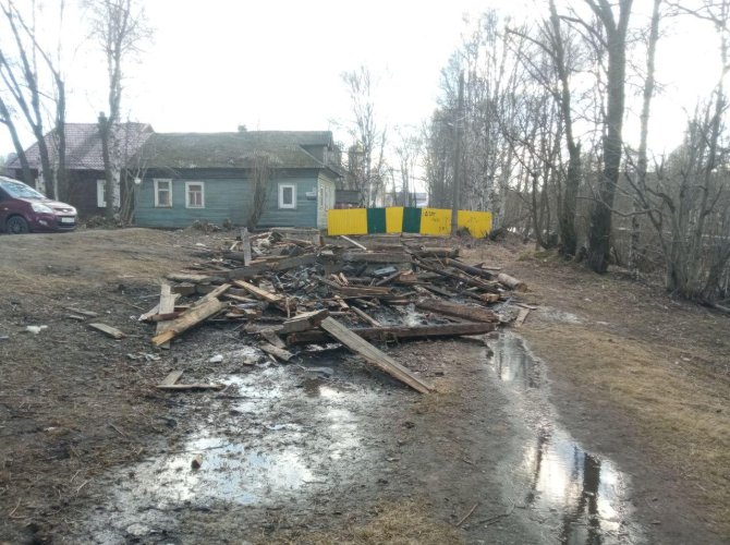 В день исполнения контракта подрядчик под камеру показательно начал работы, убрав мостки, но оставив бревна с гвоздями. Через неделю бревна были сложены в кучки (без камер). В третий раз за три недели бригады вышли на смену в прошлую пятницу и снова в присутствии объективов и целой делегации проверяющих из управления городского благоустройства. Ради дорогих гостей «ТПК Основа» пригнала целый экскаватор, который вырыл неглубокую траншею длиной около полутора десятков метров. На этом трудодень закончился и вечером 17 мая объект опять пустовал.