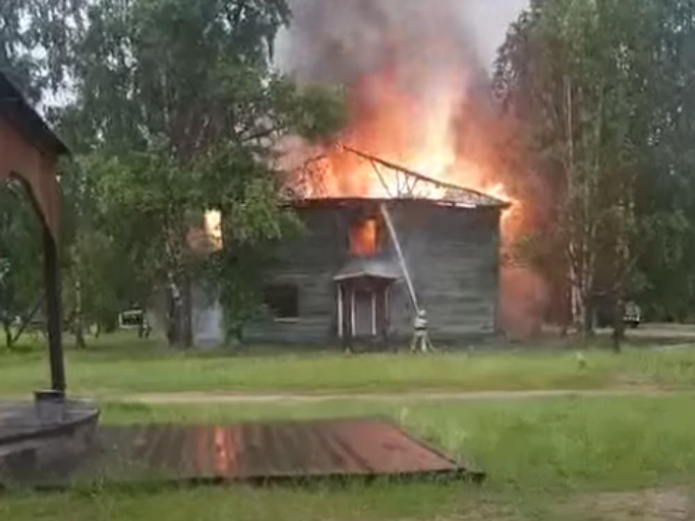 В посёлке Фоминский Вилегодского округа открытым пламенем горит административное здание