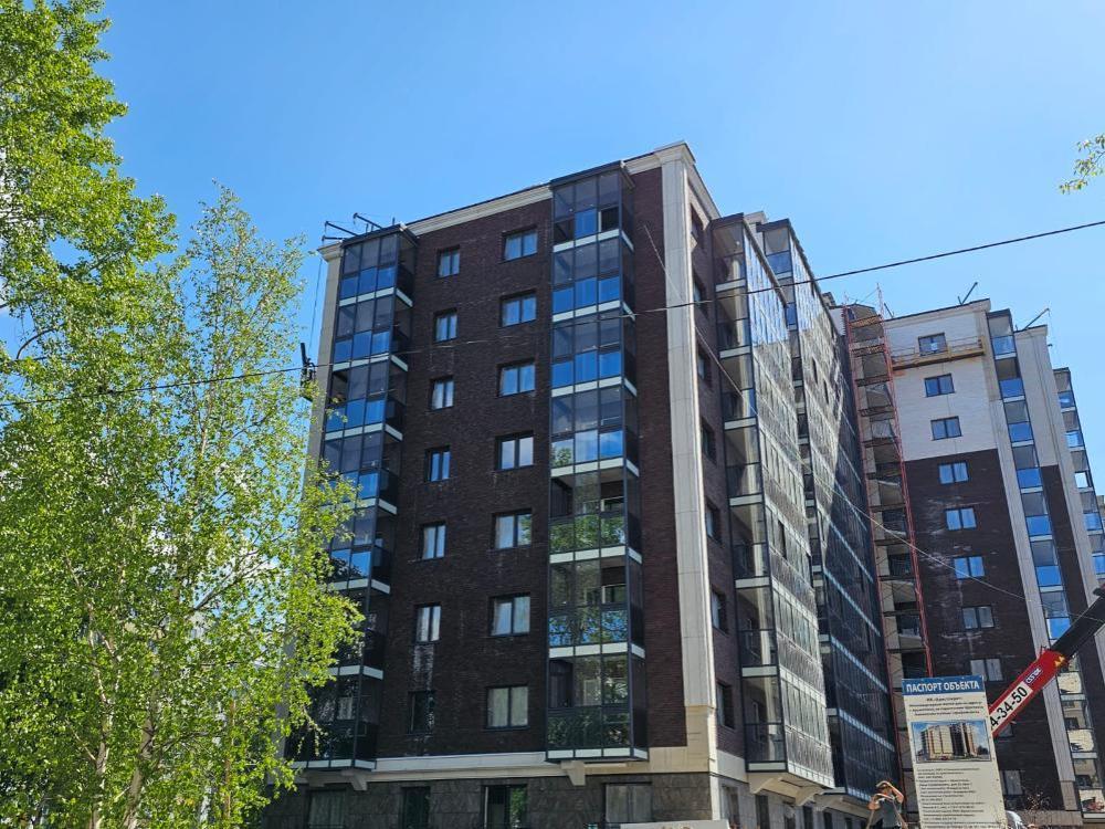 Сейчас на объекте завершаются работы — готовность оценивается в 95 процентов. И это отличный результат, если учитывая, что летом 23-го мы наблюдали окончание монолитных работ. Можно заметить, идет установка малых архитектурных форм — декоративных элементов, украшающих фасад здания.