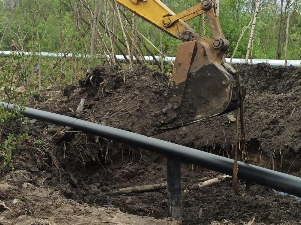 Пока труба проложена по верху, такое техническое решение связано с сильной обводненностью грунта. Как только вода уйдет и высохнет грунт, трубопровод будет опущен под землю. Бригады «РВК-Архангельск» уже приступили к откачке затопленной территории.