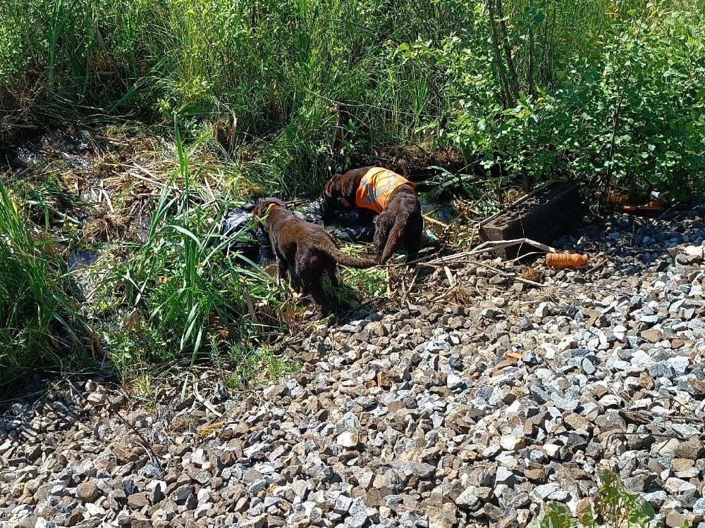 Через непродолжительное время, при обыске территории рядом с путями, поведение одной из собак начало изменяться — в овраге, около железнодорожной насыпи, лежал мужчина без признаков жизни. Им оказался пропавший.