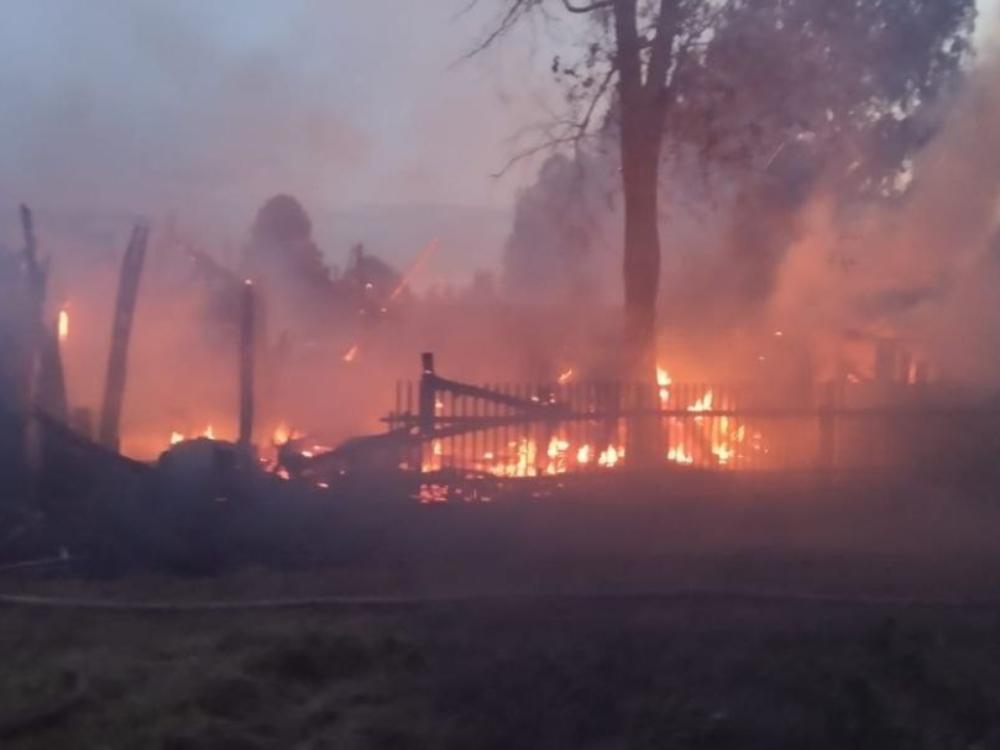 Из-за близкой застройки огонь начал быстро переходить с одной постройки на другую. Создалась угроза распространения огня на соседнюю баню. Был объявлен ранг пожара 1 бис. Для тушения потребовались сотрудники двух пожарных частей.