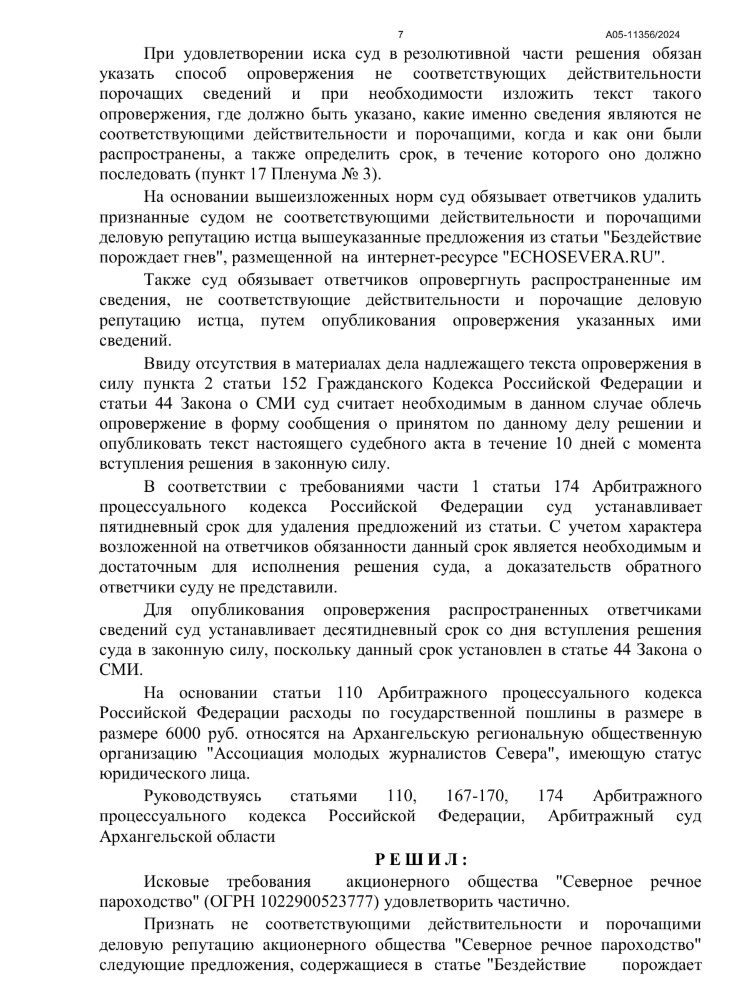 Сообщение о принятом судебном акте: