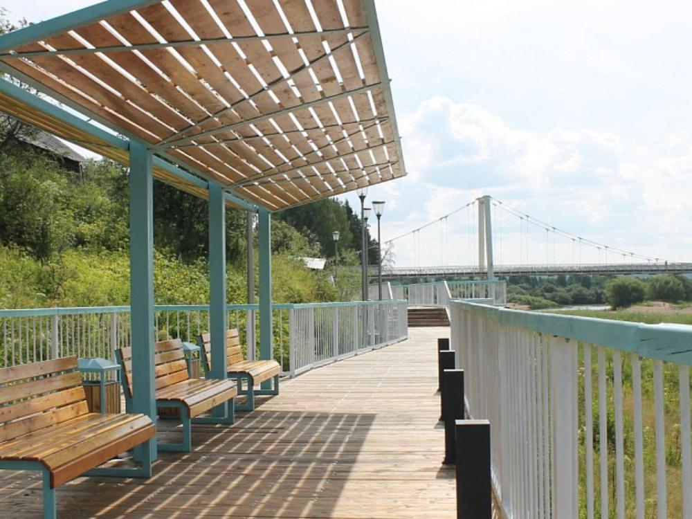 Фото пресс-службы губернатора.В Ильинско-Подомском на площади порядка 700 квадратных метров обустроены новые деревянные тротуары, входная зона, качели и места отдыха с навесами от дождя, а также установлены малые архитектурные формы, светильники и камеры видеонаблюдения. В общей сложности на преображение общественной территории направлено более 37,7 млн рублей.